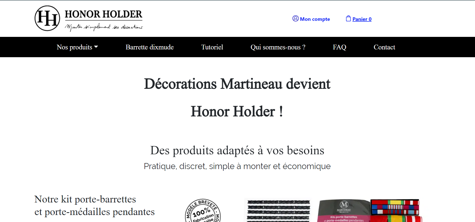 Intégration de la maquette du site web Honer Holder, une société commercialisant des porte-médailles pendantes destinés à la gendarmerie, aux armées, aux pompiers, etc.